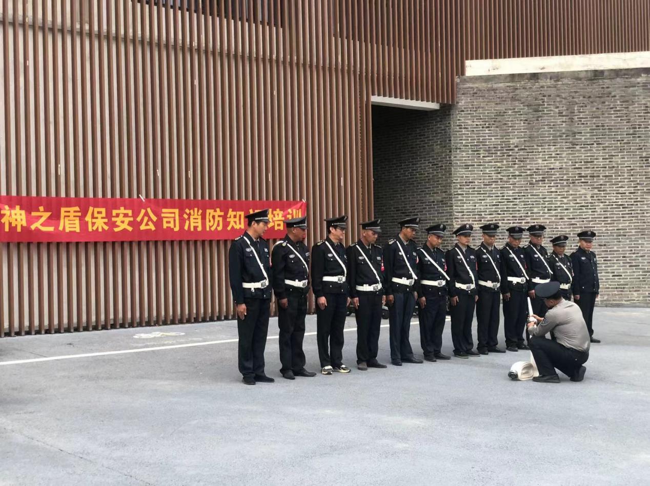 10月15日下午,我校安保公司品质部李经理在综合楼给全体队员培训消防基础知识和消防水带应用。
