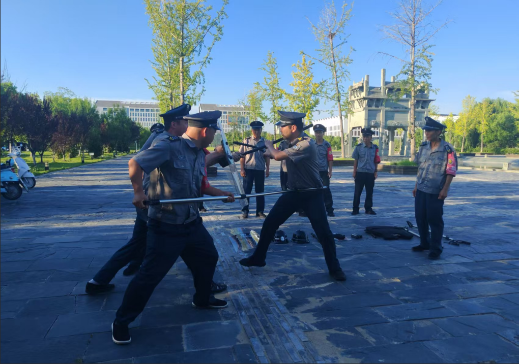 8月21日下午,我校安保公司品质部张军伟在安全管理处办公室给保安开展岗位技能知识培训和南门广场开展反恐防暴知识培训及演练。