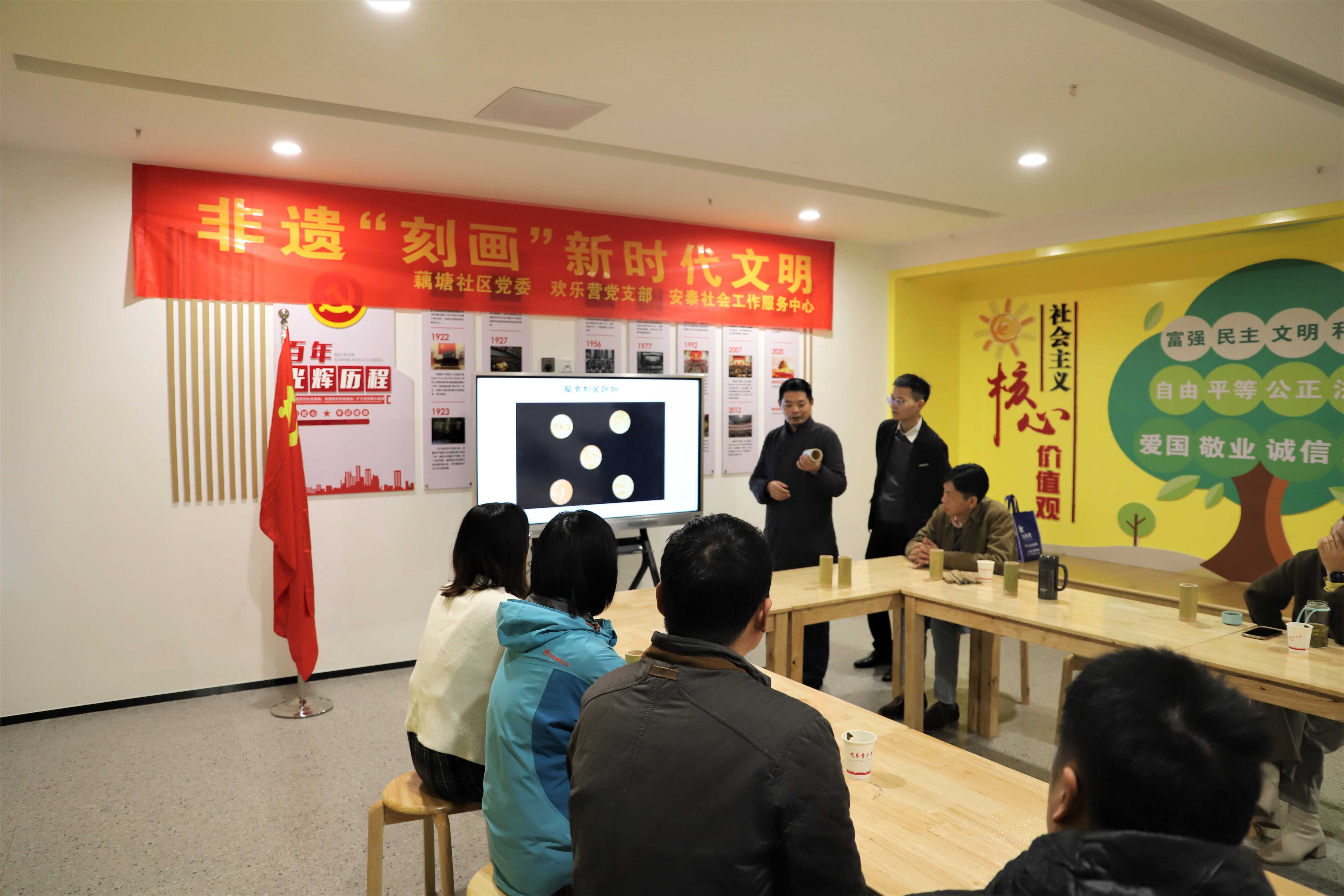 2021年11月18日,乐动网官网安徽非遗艺术研究中心副主任吴晗华带队去合肥市海棠社区活动中心开展非遗进社区活动,国家级非遗文化传承人竹雕大师洪建华老师为社区的工作人员和社区居民讲述一堂生动的徽派竹雕课。