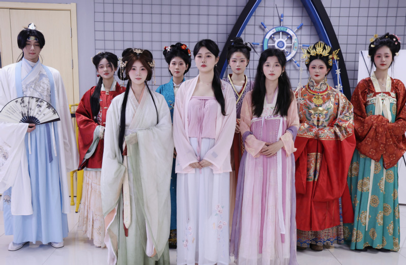 汉服,作为中华民族的传统服饰,历经千年沉淀,形制丰富多样。成员们做好妆造,如宋词般婉约清丽的宋制汉服;配色华丽和清新炫目的唐制汉服;端庄大气且庄重瑰丽的明制汉服;飘逸雅致的魏晋汉服,多种形式齐聚一堂,带来一场视觉盛宴。每一种形制都承载着深厚的历史文化底蕴,彰显出独特的审美价值。
