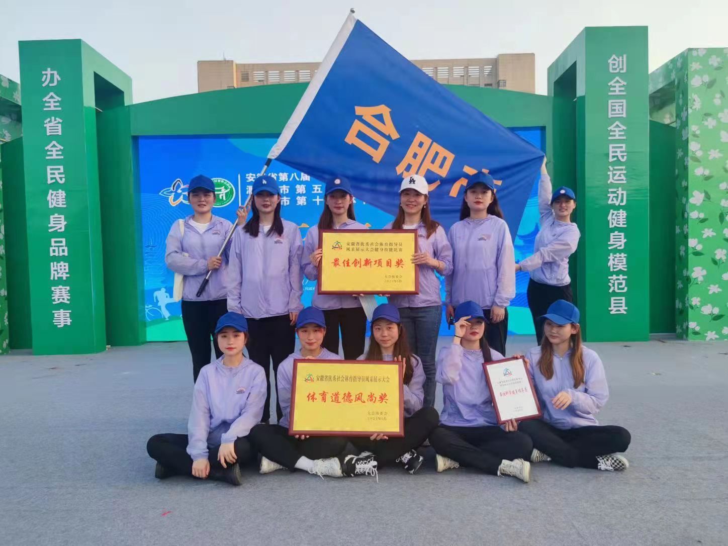 经展示,在参赛的16个地市中,我校学生在赛场上以昂扬的姿态,精彩完美的表现完成健身技能和健身大讲堂两项比赛,受到评委的一致好评,获得总分第一的好成绩。我校在安徽省优秀社会体育指导员风采展示大赛荣获四个奖项:最佳创新项目奖、体育道德风尚奖、最佳科学健身指导员及10名安徽省二级优秀社会指导员。(撰稿/摄影:徐丽 初核:杨丽 审定:束舒娅)