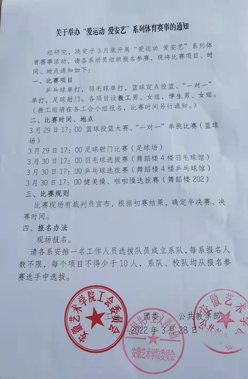 关于举办“爱运动 爱安艺”系列体育赛事的通知