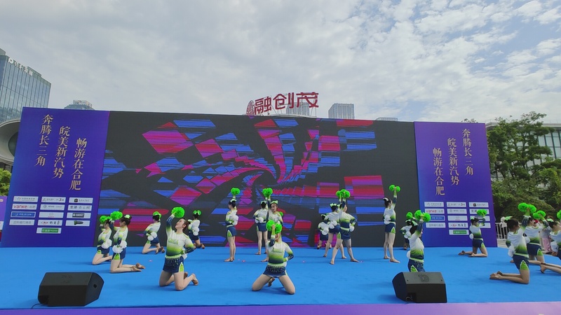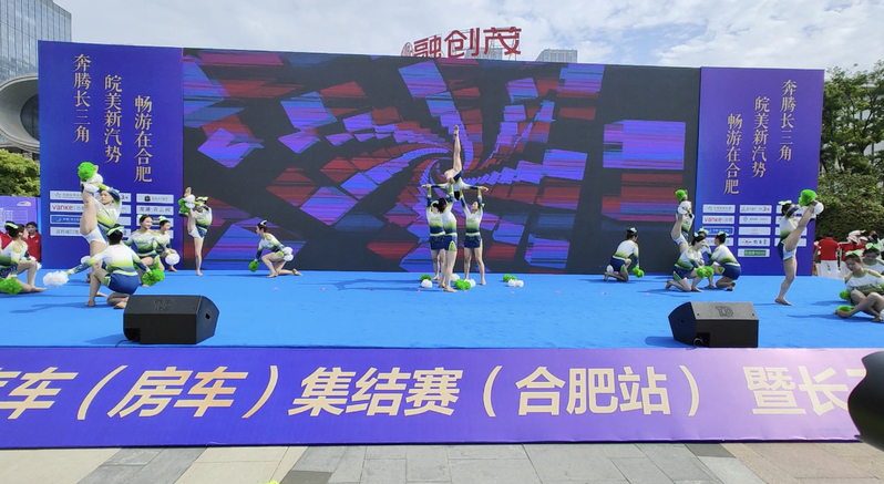 2023年5月28日由安徽省、江苏省、浙江省和上海市三省一市体育局和合肥市人民政府联合主办的2023年长三角汽车(房车)集结赛(合肥站)暨长三角运动休闲体验季开幕式在合肥举行。我校啦啦操队受合肥市体育局邀请参加本次比赛开幕式。