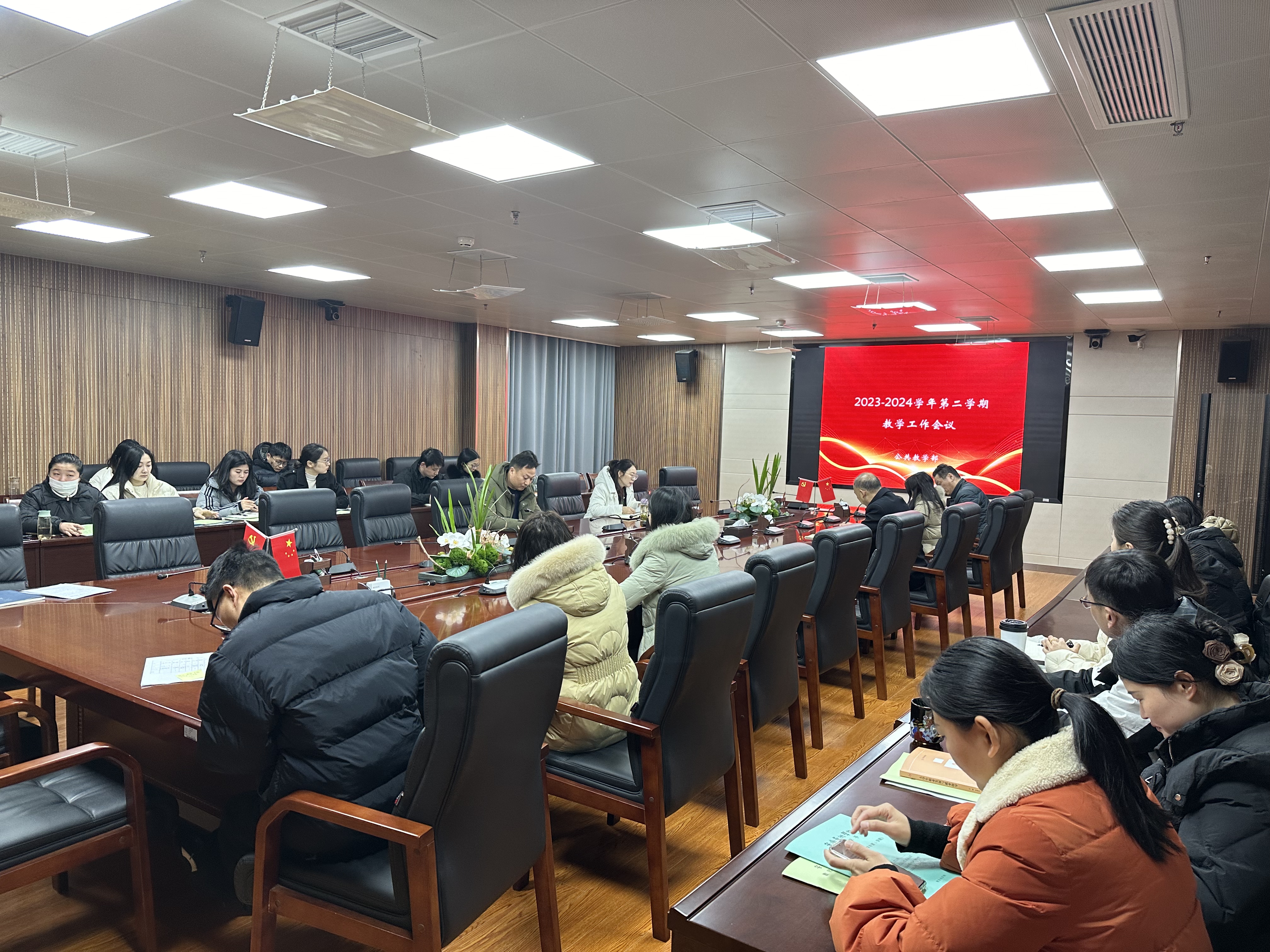 2024年2月28日上午9点,公共教学部在综合楼716会议室召开新学期教学工作会议。王雅琴副主任主持会议,直属党支部书记张井水及全体教师参加会议。