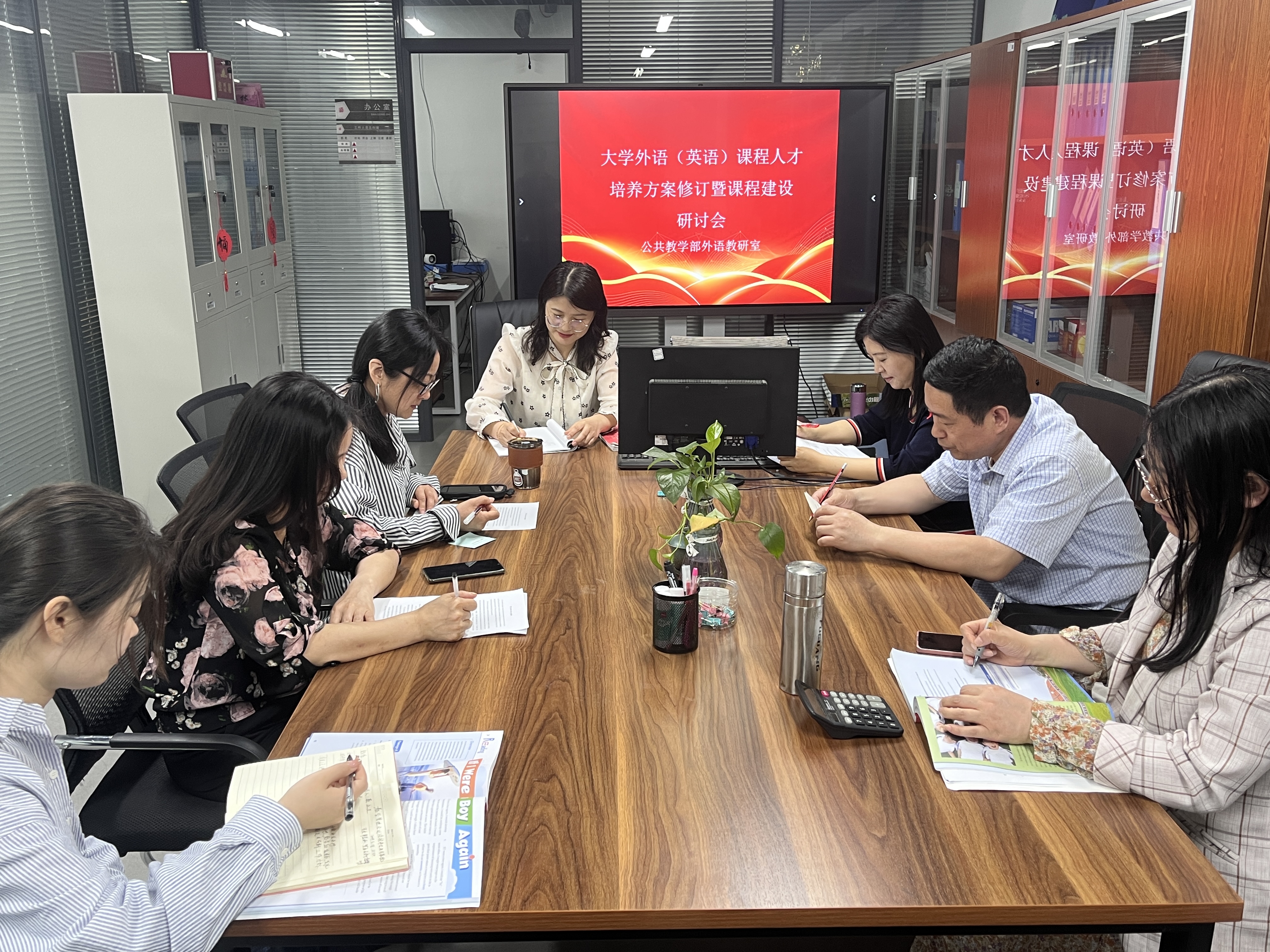 5月14日上午外语教研室在综合楼718公共教学部办公室召开大学外语(英语)课程人才培养方案暨课程建设研讨会,教研室主任周静主持会议,公共教学部直属党支部书记张井水和全体英语教师参加了本次会议。