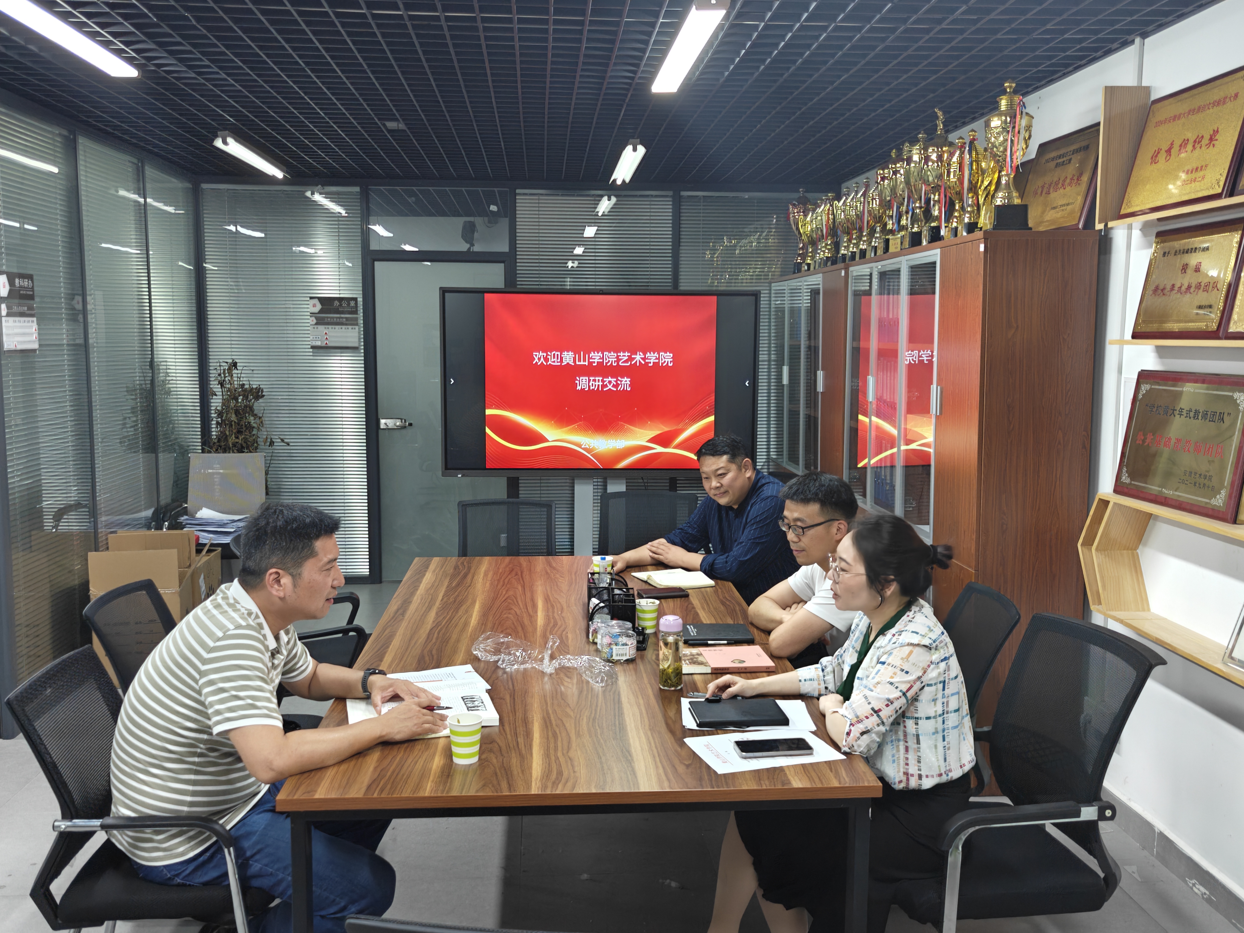 王雅琴对黄山学院艺术学院调研老师的到来表示热烈欢迎,并简要介绍了公共教学部开展《美育教育》课程的具体做法和我校美育与高等艺术教育研究所取得的相关成绩。此次调研是双方对高校美育教育的一次深入探讨和交流,为双方高校新时代美育教育质量提升搭建了桥梁。(撰稿:王雅琴 摄影:黄杰 初核:邵明广 复核:李卫国 终核:张井水)