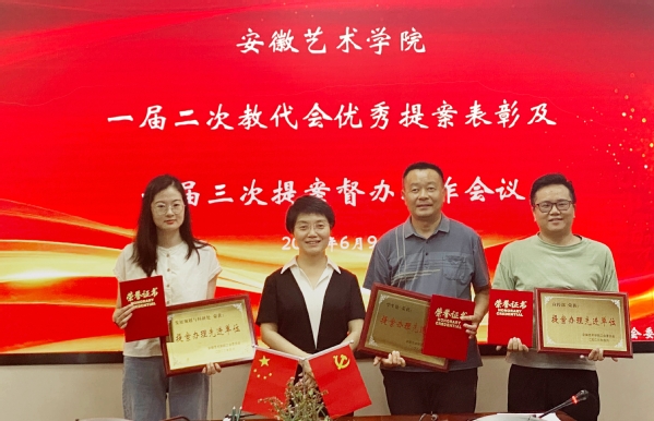 6月9日上午,学校一届二次教代会优秀提案颁奖典礼暨一届三次教代会提案督办工作会议在综合楼823会议室举行。党委书记韩军为优秀提案提案人代表和提案办理先进单位颁发奖杯、证书。党委委员、发展规划与科研处处长、提案工作委员会主任孙来法参会。行政负责人,校教代会执委会副主任沈端良主持。