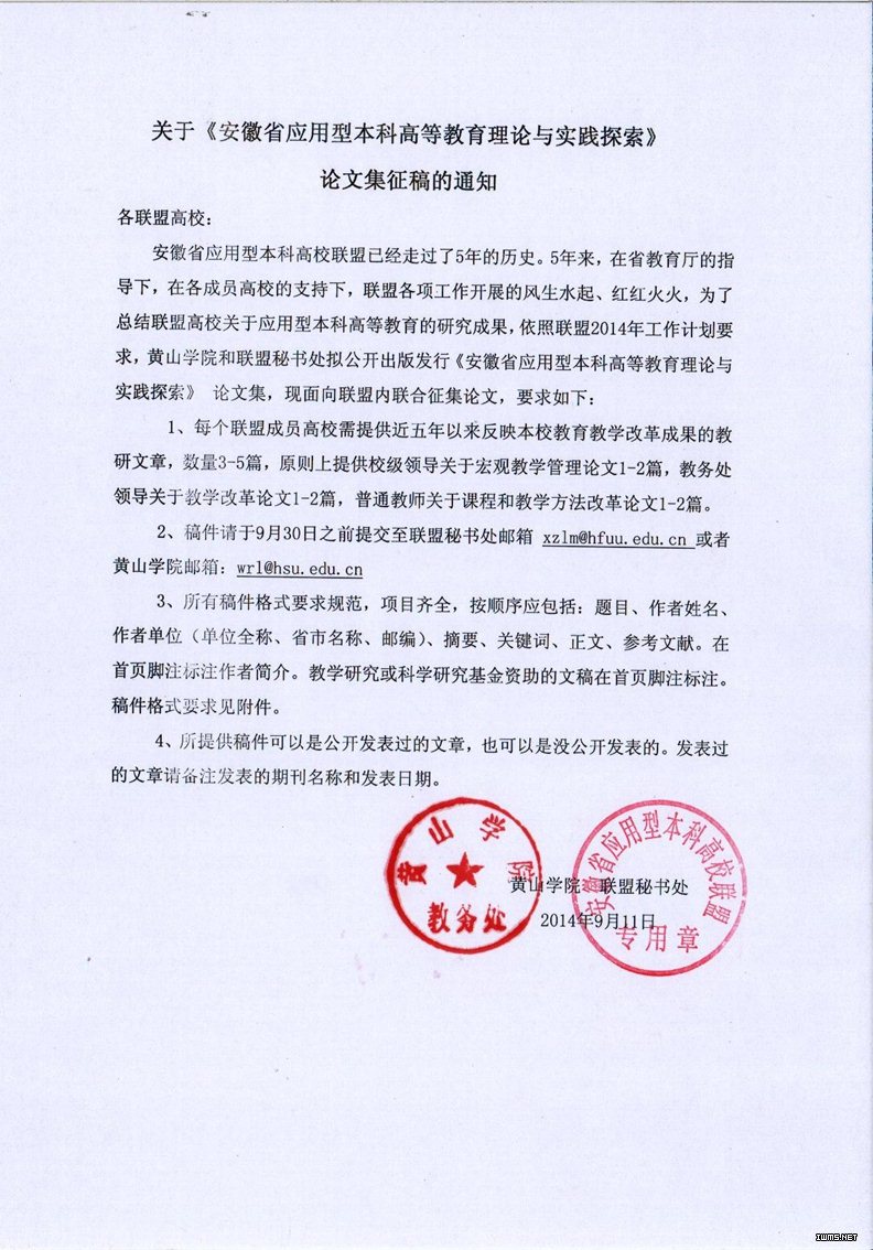 关于《安徽省应用型本科高等教育理论与实践探索》论文征集稿的通知