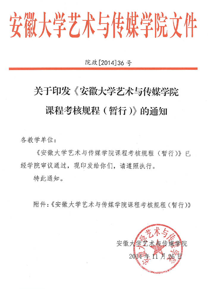 安徽大学艺术与传媒学院课程考核规程(暂行)