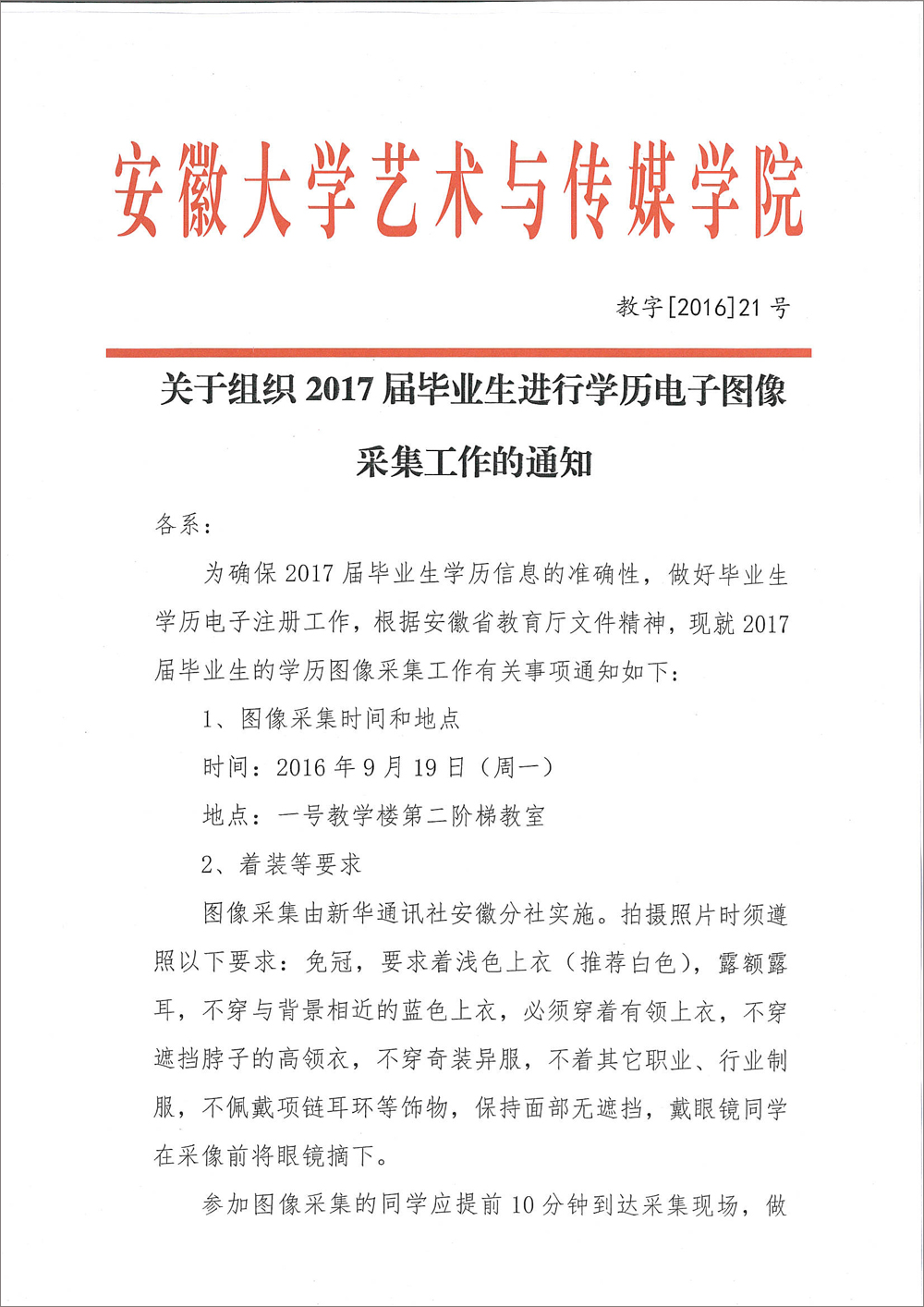 关于组织2017届毕业生进行学历电子图像采集工作的通知