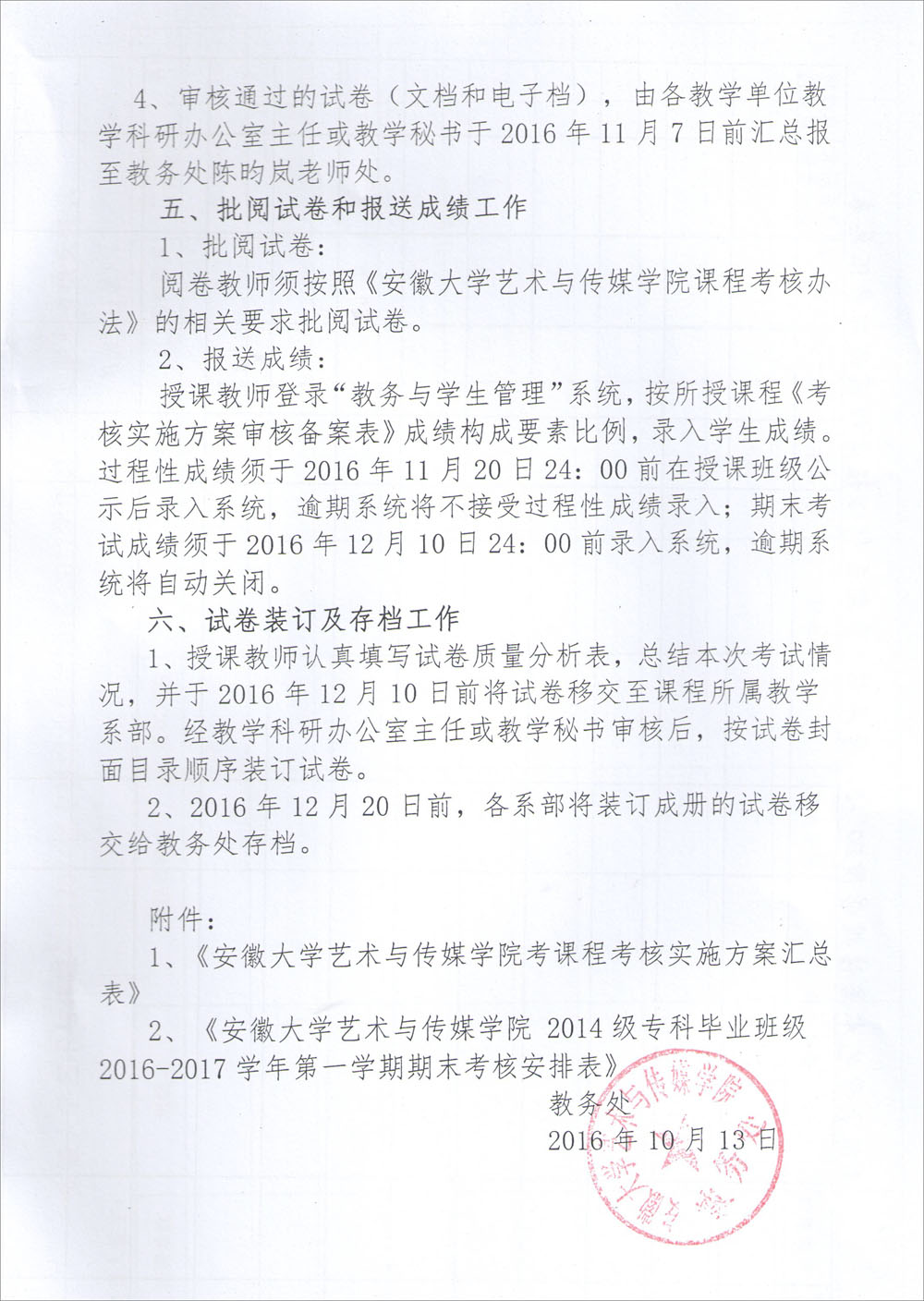 关于做好2014级专科毕业班级2016-2017学年第一学期期末考核工作的通知