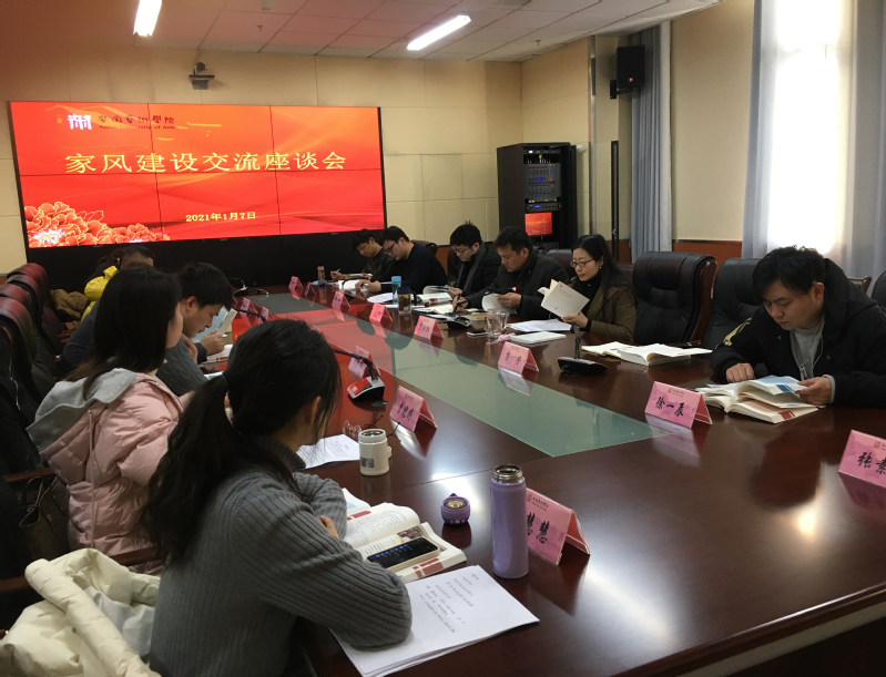 为加强我校党风廉政建设,营造家风好、校风清、党风正的良好政治生态,切实推进学校高水平、高质量发展,1月7日,学校纪委办联合党委组织部组织召开《清风传家》《严以治家》家风建设专题座谈会,各党总支党员代表及组织部、纪委办相关工作人员参加了此次会议,会议由纪委办公室副主任、党建办常务副主任丁永红主持,党委组织部部长、党建办主任曹晓富参加会议并讲话。