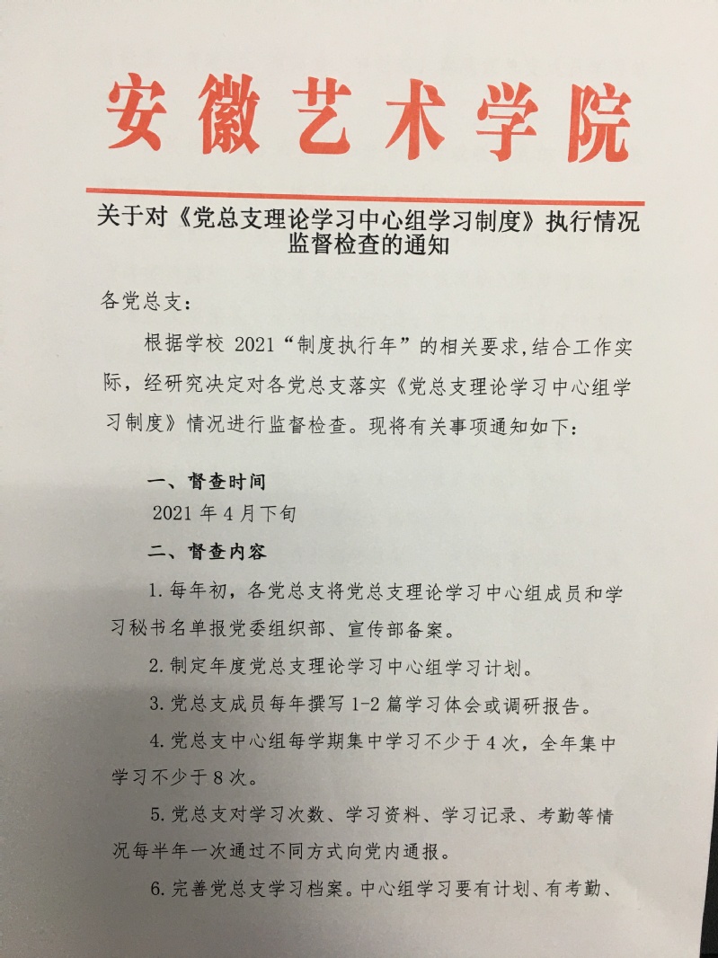 关于对《党总支理论学习中心组学习制度》执行情况监督检查的通知