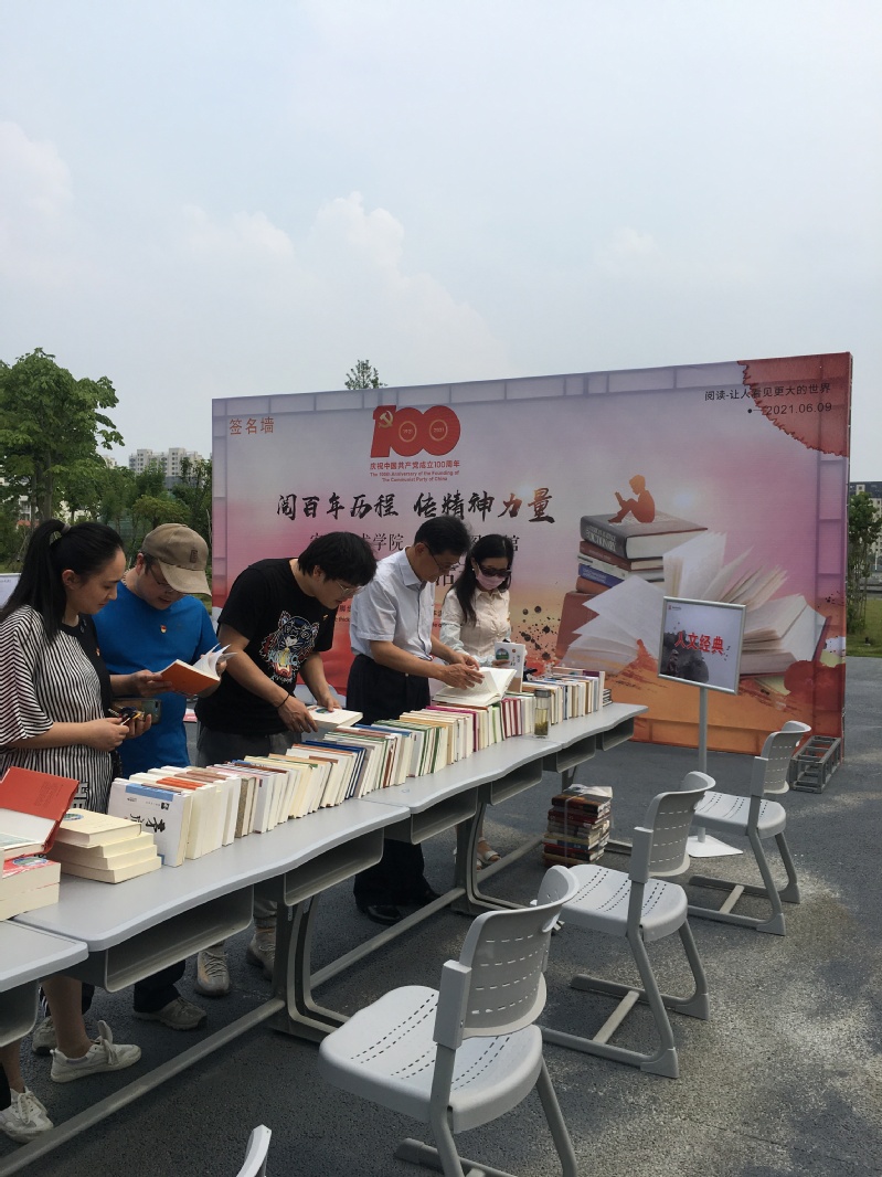 为迎接建党100周年,加强青年大学生党史学习教育,营造良好的校园阅读氛围,6月9日下午在综合楼南侧广场,乐动网官网和安徽省图书馆联合举办阅百年历程 传精神力量——优秀书刊漂流阅读活动,校党务负责人沈端良以普通党员身份和纪委办党支部全体党员一起参加此次活动。