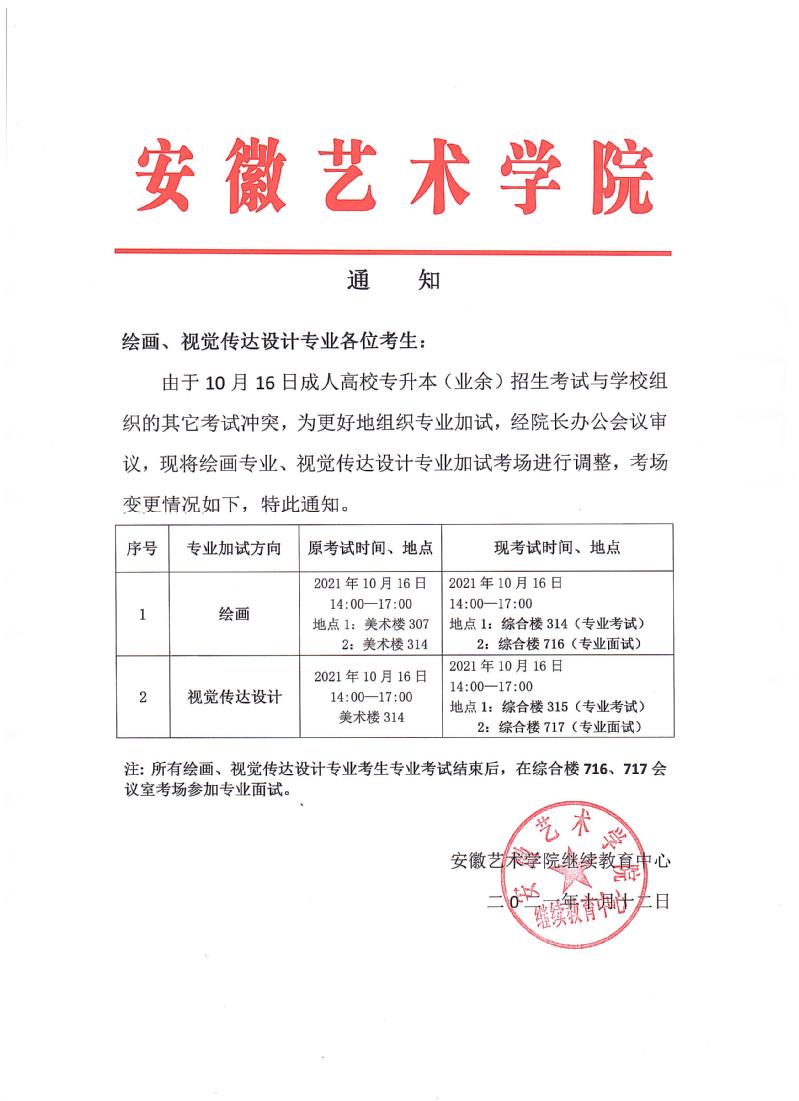 2021年专升本(业余)招生考试考场变更通知