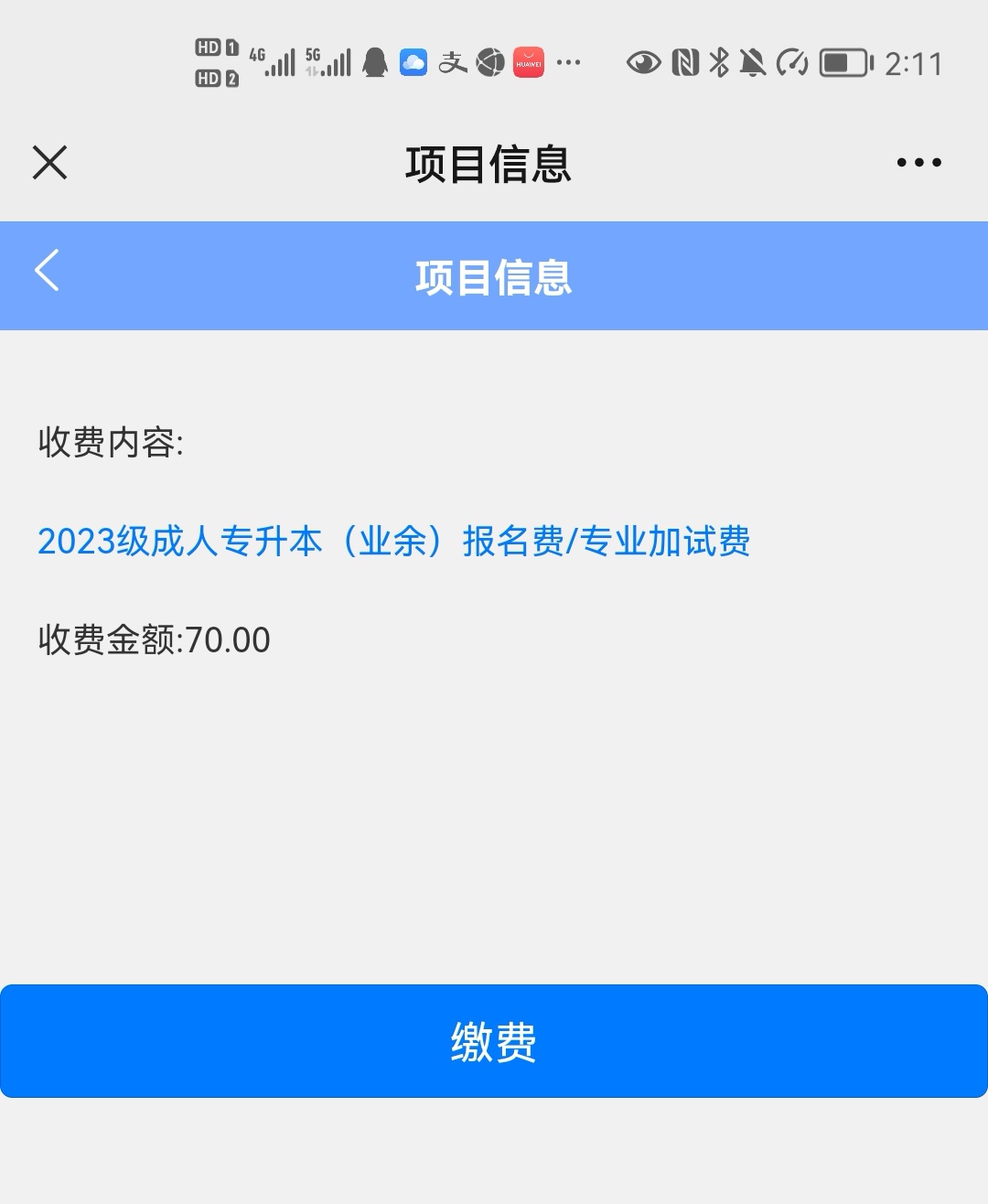 3. 点击需要缴费的报名项目