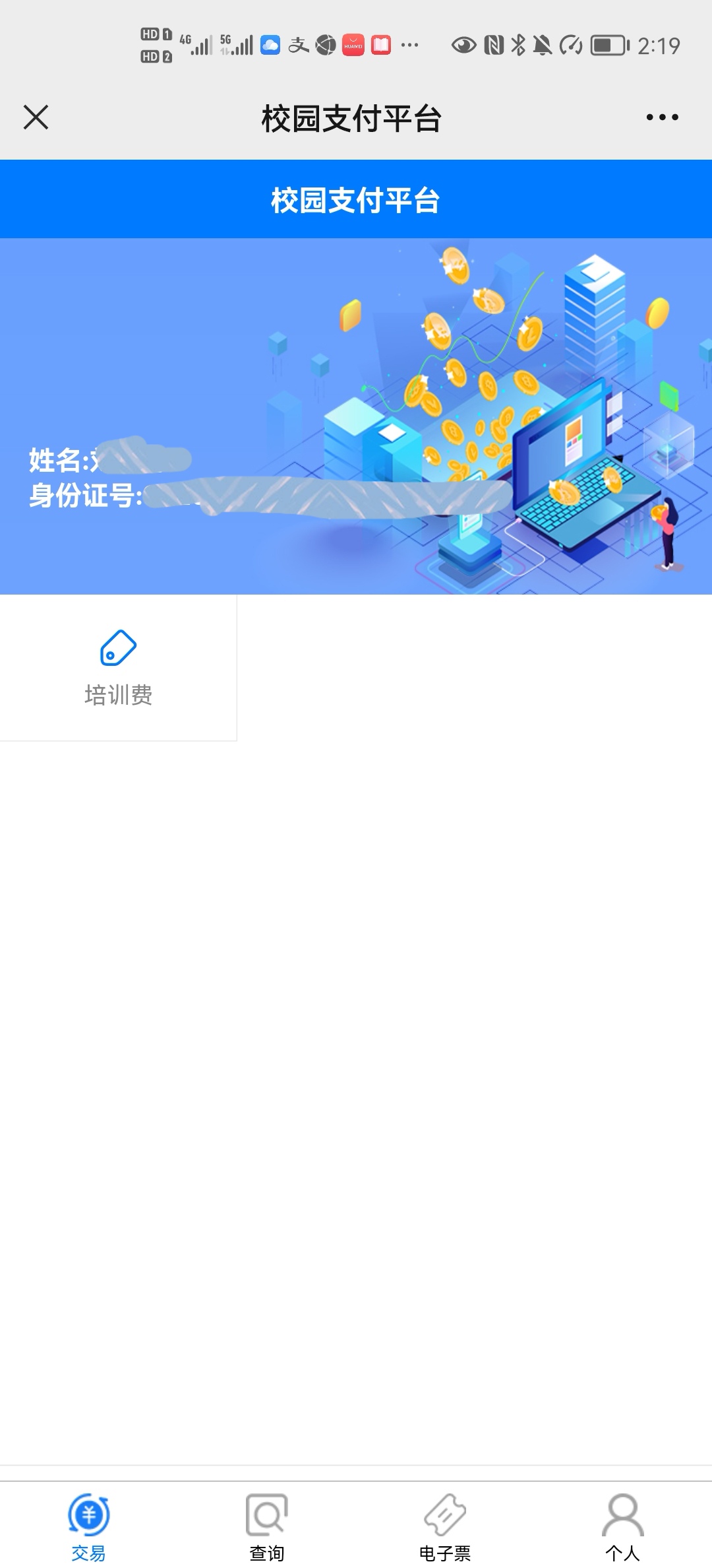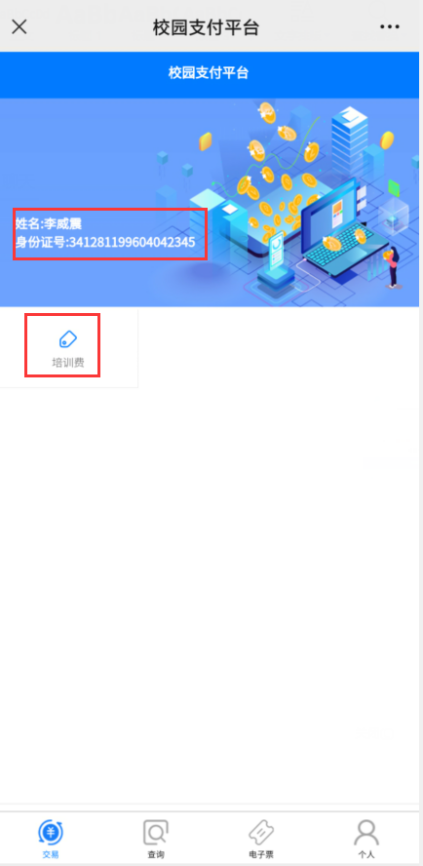 交易前请仔细核对个人信息(如有错误,请联系老师更正后再进行缴费)