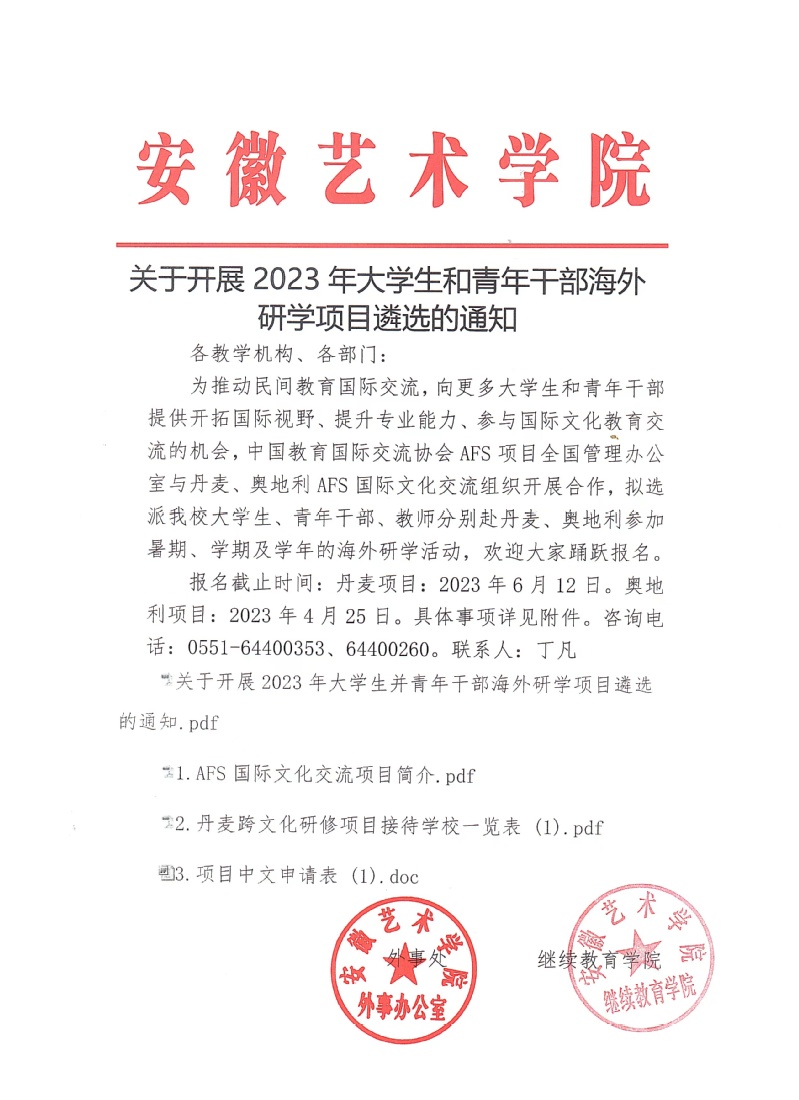 关于开展2023年大学生并青年干部海外研学项目遴选的通知.pdf