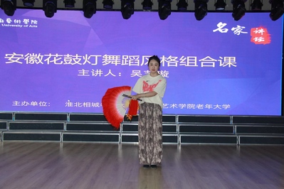 仪式结束后,乐动网官网舞蹈学院教师吴艺璇开展《安徽花鼓灯舞蹈风格组合课二》的课程教学。在前期课程的基础上,吴老师带老年学员们复习了平足步、执扇方式等基础动作,对安徽花鼓灯的组合动作进行完整的教学。课程现场,吴老师与老年学员们共同演绎了一场视觉盛宴。