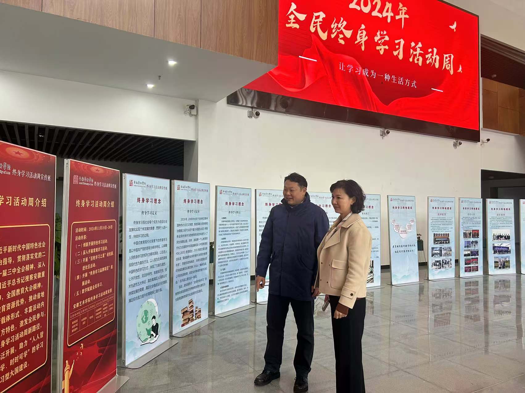 终身学习主题展于11月18-29日在综合楼一楼大厅展出,共分为活动简介、理念宣传、我校终身学习阵地建设情况、典型人物及事迹四个板块,吸引了众多师生前来参观。