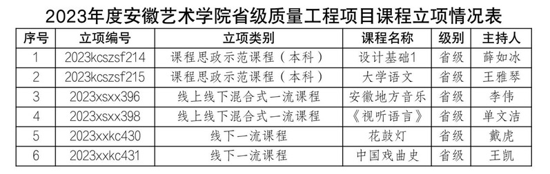 近日,安徽省教育厅公布了2023年度高等学校质量工程项目名单。
