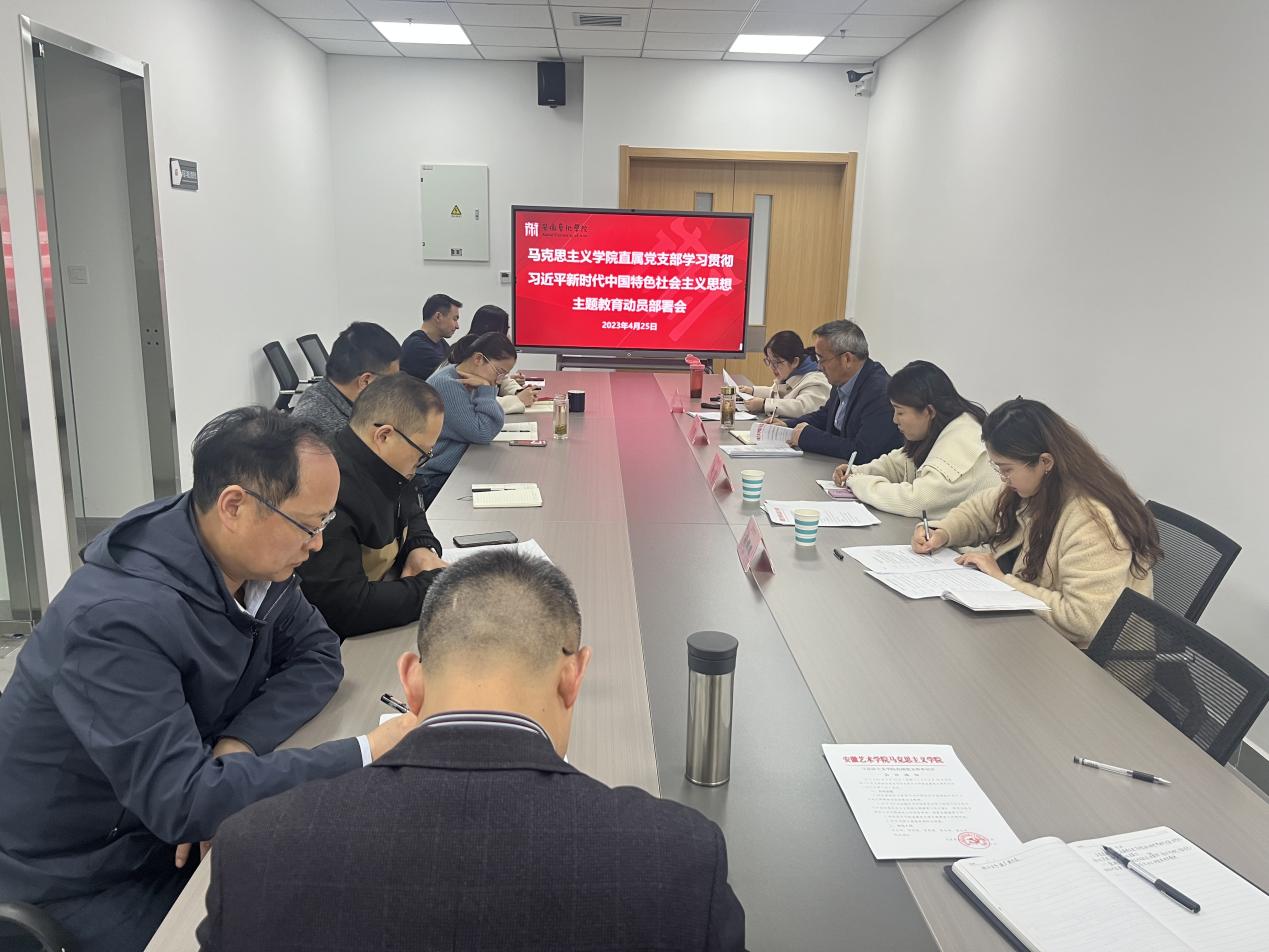 4月25日中午,马克思主义学院直属党支部在综合楼721会议室召开学习贯彻习近平新时代中国特色社会主义思想主题教育动员部署会。校党委巡察组成员赵晨、张娜娜旁听列席。大会由马克思主义学院直属党支部书记吴孔铎主持。