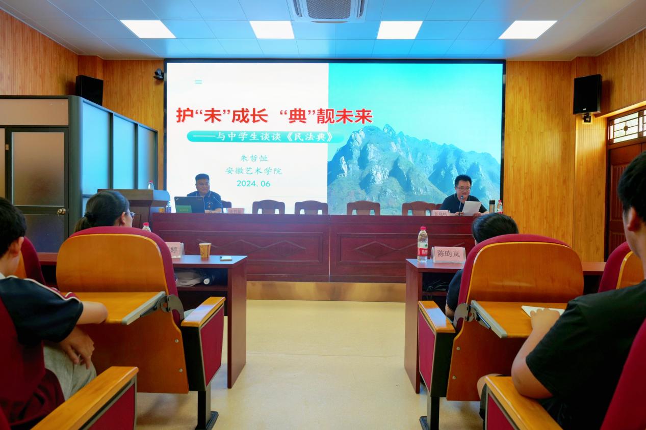 实践基地协议签订和授牌仪式结束后,马克思主义学院院长吴孔铎为汤家汇镇机关干部讲一堂题为“当前经济形势怎么看 高质量发展怎么办”的专题党课。习近平新时代中国特色社会主义思想概论教研室主任朱哲恒以“‘护’未成长,‘典’靓未来——与中学生谈谈《中华人民共和国民法典》”为题为镇中心校学生讲授思政课。课程精彩生动,现场气氛热烈。