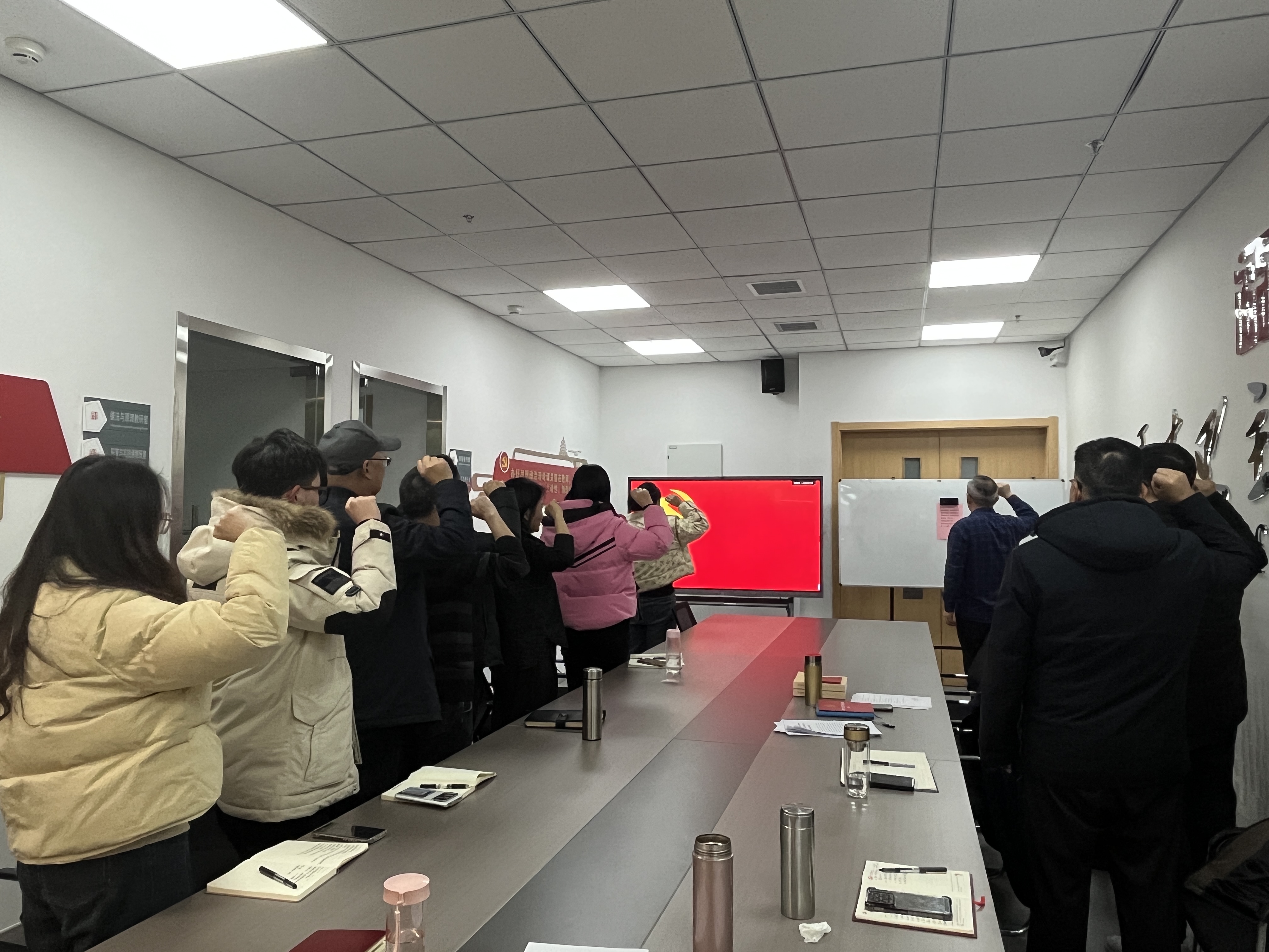 学习之后,支部举行新党员入党宣誓主题党日活动。李越阳同志作为老党员代表为新党员单玲玲同志佩戴党员徽章。全体党员在领誓人吴孔铎的带领下,面对鲜红的中国共产党党旗庄严宣誓,重温入党誓词。铿锵有力的宣誓,表达了大家对党的无限忠诚、热爱和听党话、跟党走的坚定决心。宣誓结束后,吴孔铎同志为新党员赠送《中国共产党章程》和《习近平著作选读》第一卷、第二卷,勉励新党员要永远牢记入党誓词,坚定理想信念,深入学习贯彻习近平新时代中国特色社会主义思想,不仅在组织上入党,更在思想上入党。要立足本职岗位,充分发挥先锋模范作用。