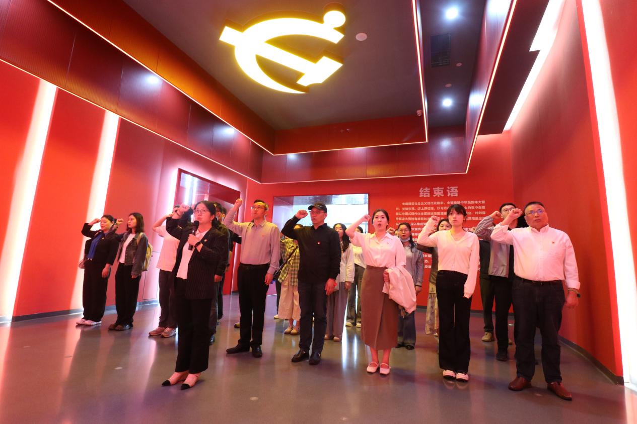参观结束后,全体党员面向党旗,重温入党誓词,铿锵有力的誓言展现出不忘初心、牢记使命的信心和决心。