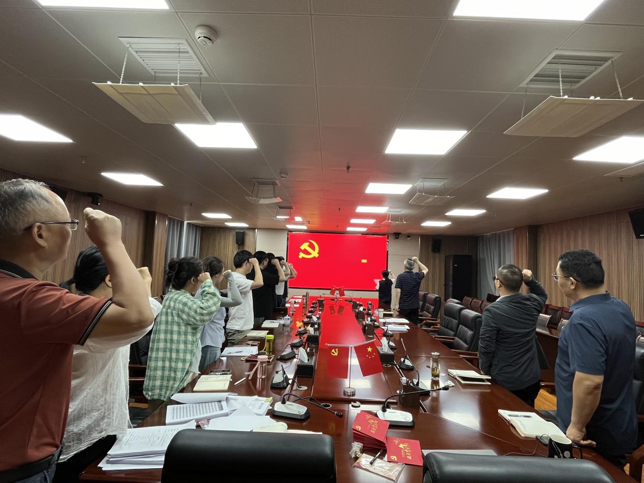 随后,进入了庄重的重温入党誓词环节。全体党员面向鲜红的党旗,庄严地举起右手,重温入党时的铮铮誓言。一句句坚定有力的誓词在会议室回荡,仿佛将大家带回到了入党的那一刻,提醒着每一位党员要时刻牢记自己的初心和使命,为党的事业不懈奋斗。