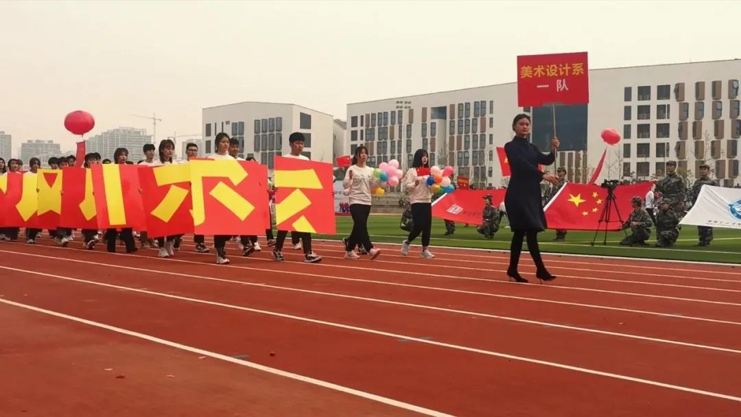 在激昂的乐曲中,开幕式拉开帷幕,美术设计系以“运动之美,美术之美,各有其美,天下大美”的专业特色展现运动会口号,以艺术之名发出青春畅想。