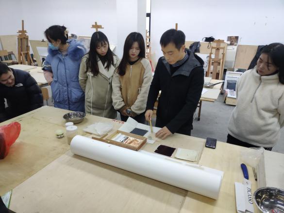 课程大概分三个部分,一,示范部分有:“通用技法”、“通用材料”的操作与使用。比如,贴箔、“箔变”、纸的处理方法、拼贴技法、现成品处理及使用、画底的制作、草木染等。二,理论部分有:讲述综合材料绘画的基本概念和它的发展脉络,重点介绍了它在当代的地位与价值。三,实践部分:每位同学选择了一个自己的主题,大家选择的材料技法几乎不重复,每个人通过完成一幅或多幅作品,从中掌握了对主题的把握,对材料的处理和应用,以及材料技法与主题的关系。
