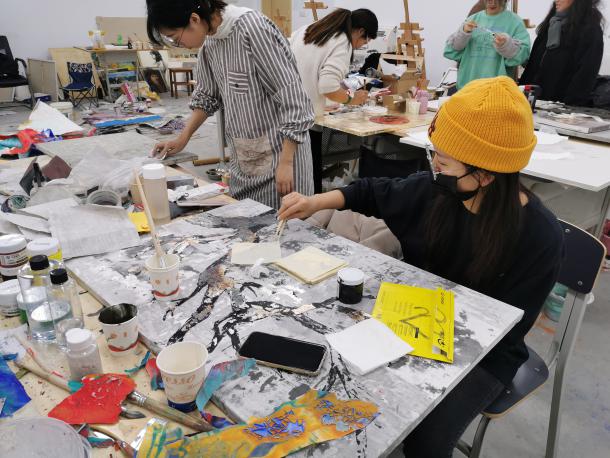 综合材料绘画课程在全国大多高校中还是一门“年轻的新课程”,它还没有很成熟的范式,大家都在研究、摸索。本课程延用了中央美院胡伟先生“以创作带技法”的教学思路。让学生先定自己的创作主题或题材,再去用“适合”的材料与技法去表现。这就避免了课程陷入简单的“技术训练”之中,单纯的做效果、玩机理,并不能激发学生创作情绪与创造性思维。本课程的核心是“创作”,是培养学生的创作意识,让学生掌握当代架上绘画的创作规律。