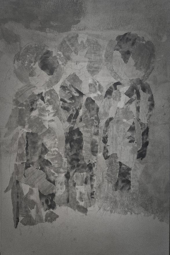 创作材料:材料工具方面,主要以木板,白乳胶,照片,主要以剪纸为主,对照片打乱重组。
