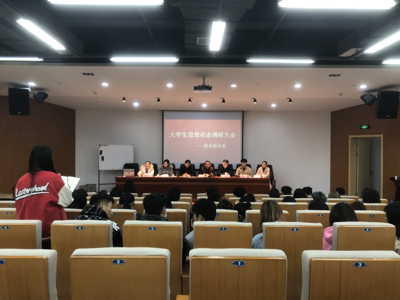 3月19日下午,乐动网官网在美术设计楼学术报告厅召开了大学生思想动态调研会。宣传处,总务处,保卫处,团委,学生处以及马院等部门领导参加会议,美术设计系副主任吴晗华主持会议,美术设计系各年级专业学生代表参加调研会。