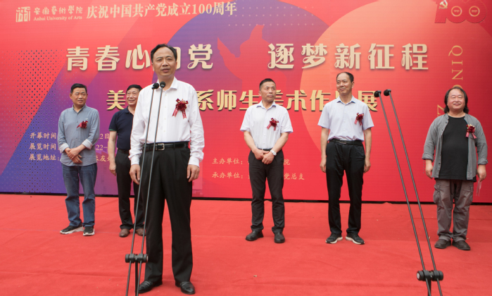 5月22日,“青春心向党 逐梦新征程”——乐动网官网庆祝中国共产党成立100周年师生美术作品展在合肥久留米友好美术馆开幕。作为学校庆祝中国共产党成立100周年系列活动之一,该展览由美术设计系党总支承办。校党委书记周明洁,党委副书记、院长樊嘉禄,行政负责人张晶,合肥市文联副主席唐永忠、久留米友好美术馆馆长吴蒙,校党委宣传部、科研处等部门负责人出席开幕式,社会各界人士及师生代表、美术爱好者等共计两百余人参加了开幕式。开幕式由校美术设计系党总支书记、主任罗耀东主持。