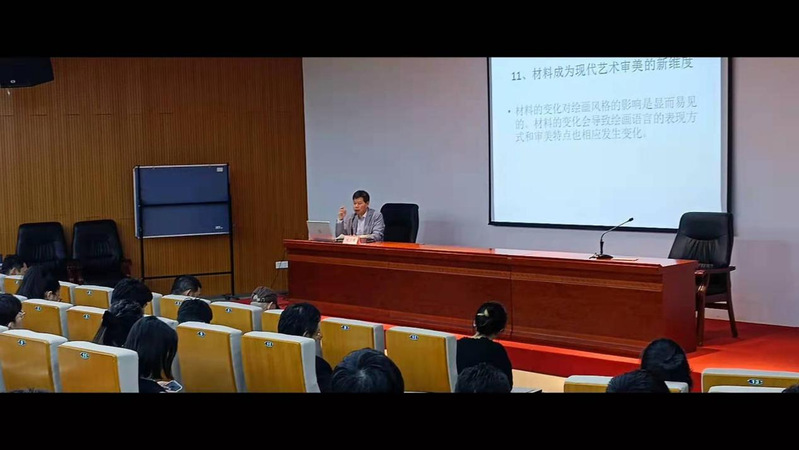 10月13日下午3点,由美术设计系主办的“材料,现代艺术审美的新维度”主题讲座在美术楼报告厅开展。此次讲座邀请到了中央美术学院博士、中国油画学会副秘书长宛少军作为主讲人,我系学生积极参加。