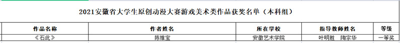 近日,2021安徽省原创动漫大赛落下帷幕,乐动网官网美术设计系数字媒体艺术专业多位学生取得优异的成绩,获得三个一等奖、两个二等奖、一个三等奖。