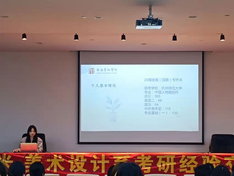 为进一步加强同学们对考研的认识,提高考研斗志,加强学风建设。5月11日下午,美术设计系在美术楼一楼报告厅举办了“良米·考研经验交流会”。此次交流会分别由陈禹竹、吴锜、陈俊哲和牛欣欣四位同学主讲。各年级有考研意向的学生积极参加。