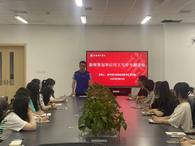 为进一步提高美术设计系团总支学生会新闻策划能力与写作水平,调动大家对新闻创作的积极性,培养学生新闻写作能力。5月22日晚,党总支副书记李卫国在美术楼307教室,为学生会各部门成员、各班级团支书作了《新闻策划和应用文写作》专题讲座。