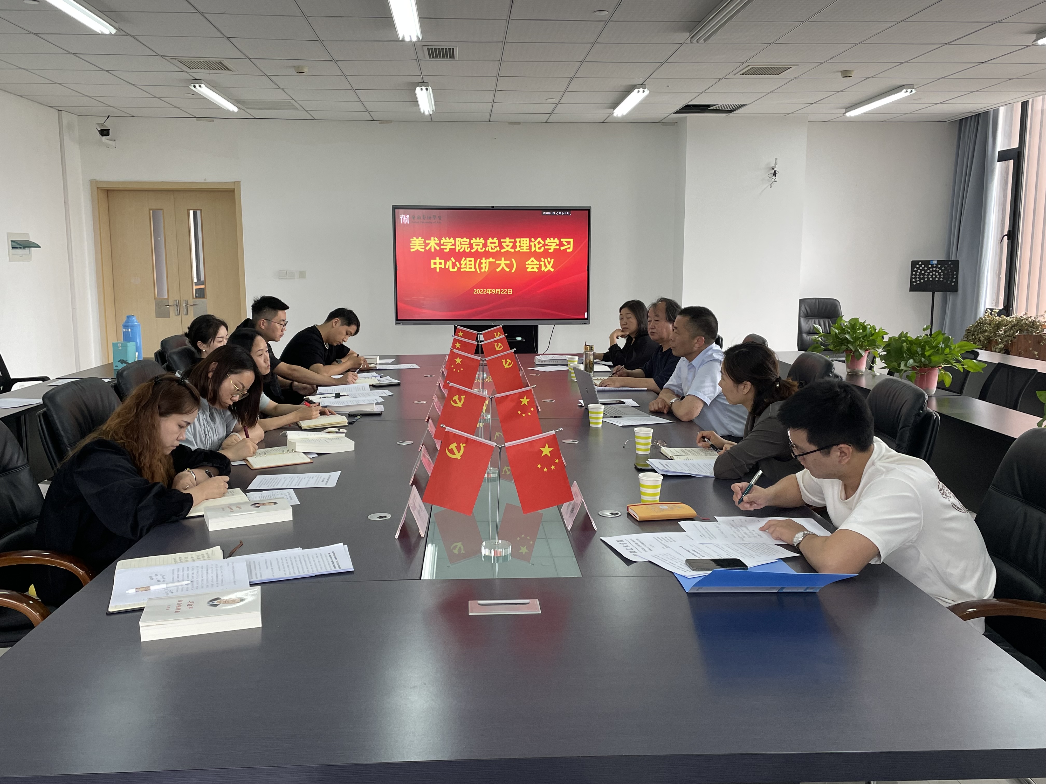 9月22日下午,美术学院在学院307会议室召开党总支理论学习中心组(扩大)会议,校党委副书记、校长樊嘉禄,人事处副处长兼舞蹈学院党总支副书记徐芳,舞蹈学院时特老师列席旁听,学院党总支成员、支部书记、教研室主任、团总支书记及组织员等参加本次会议,会议由学院党总支书记罗耀东主持。