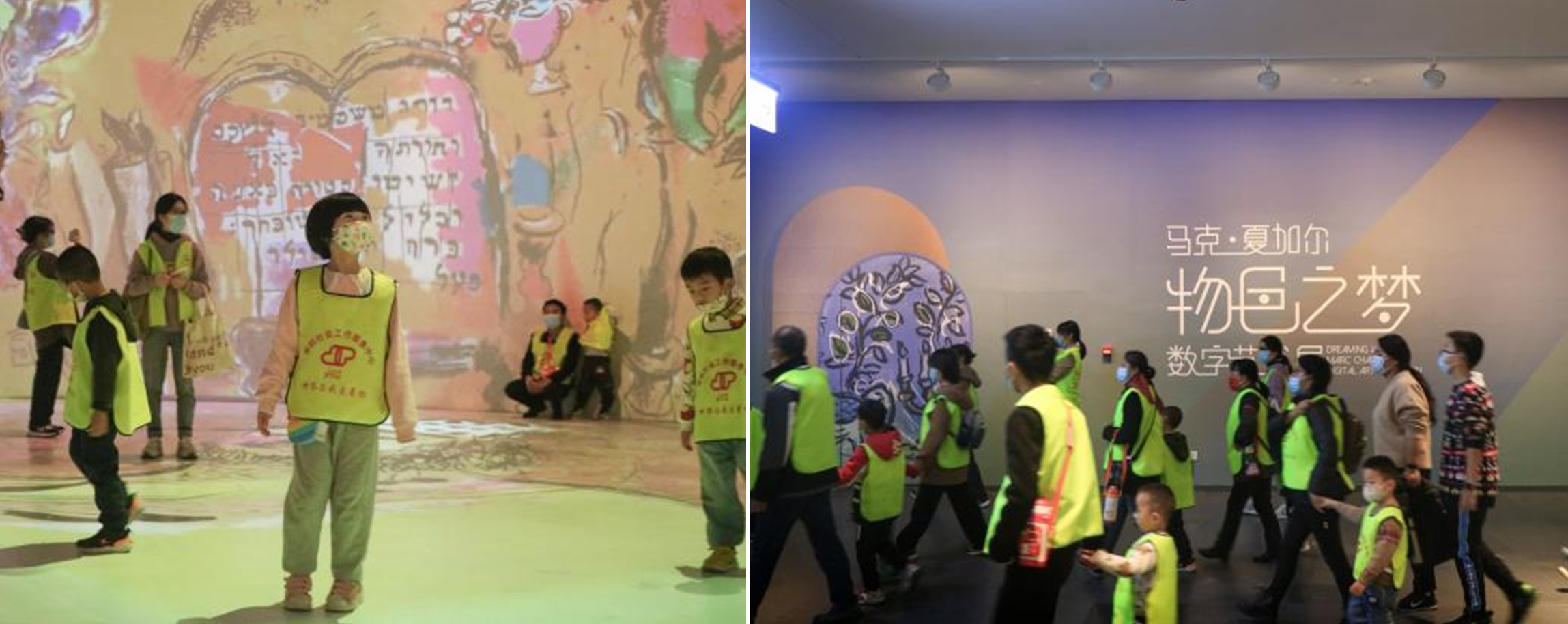 志愿者们还会带领小朋友们参观了马克夏加尔的物色之梦作品展馆,带领他们领略物色之梦,探寻光与色的梦幻。”