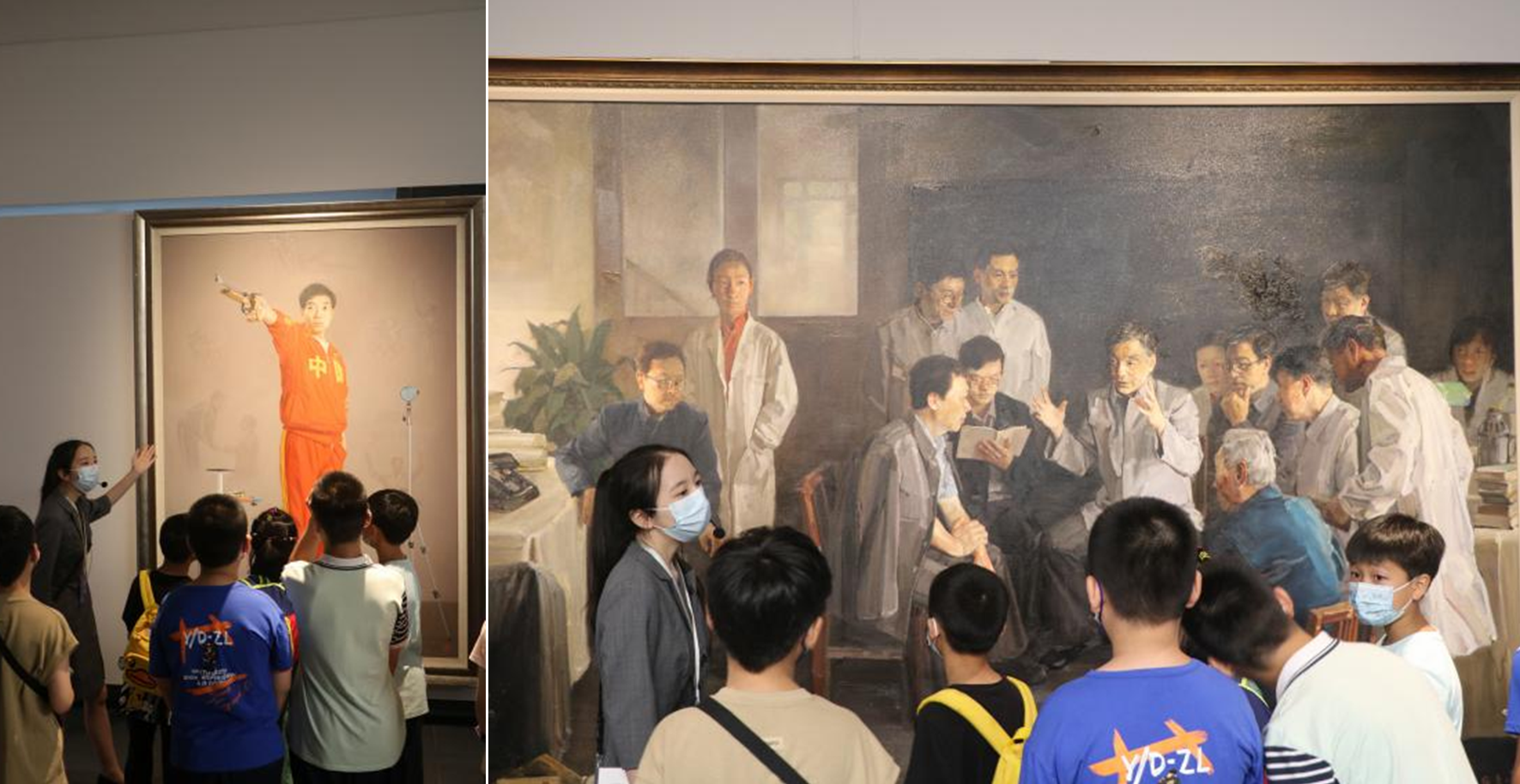 在志愿活动中,程瑞同学和公教老师们主要会带领公教活动的小朋友们参观安徽省重大历史题材美术作品展和韩美林美术作品展。在重大历史题材展厅中,小朋友们在讲解老师的带领下会看到邓稼先先生与研究原子弹的科学家们讨论研究的画面,明白先辈们是在何等艰苦的条件下创造出惊天动地的原子弹。看到取得中国奥运史上第一枚金牌的许海峰,了解到这枚金牌的故事。还有许多安徽历史上的各个重大事件。