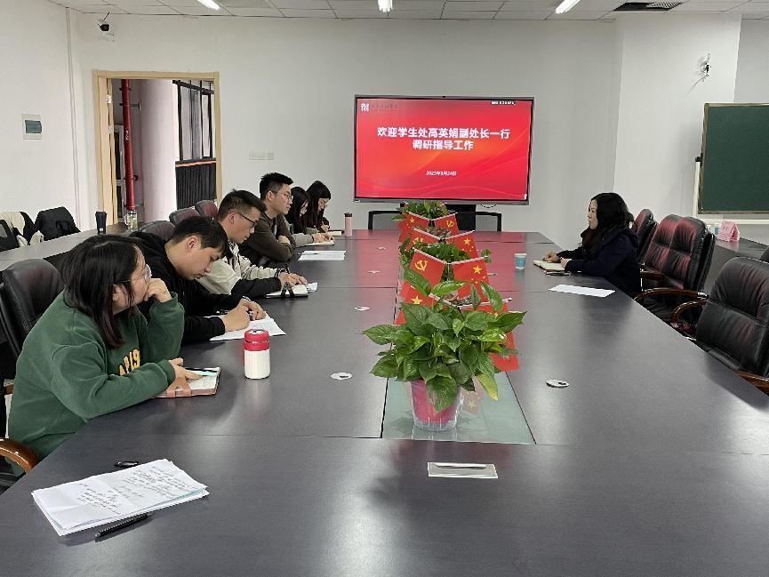 3月24日上午,学生处副处长高英娟一行到学院调研指导学生工作。党总支副书记李卫国和全体辅导员参加调研活动。