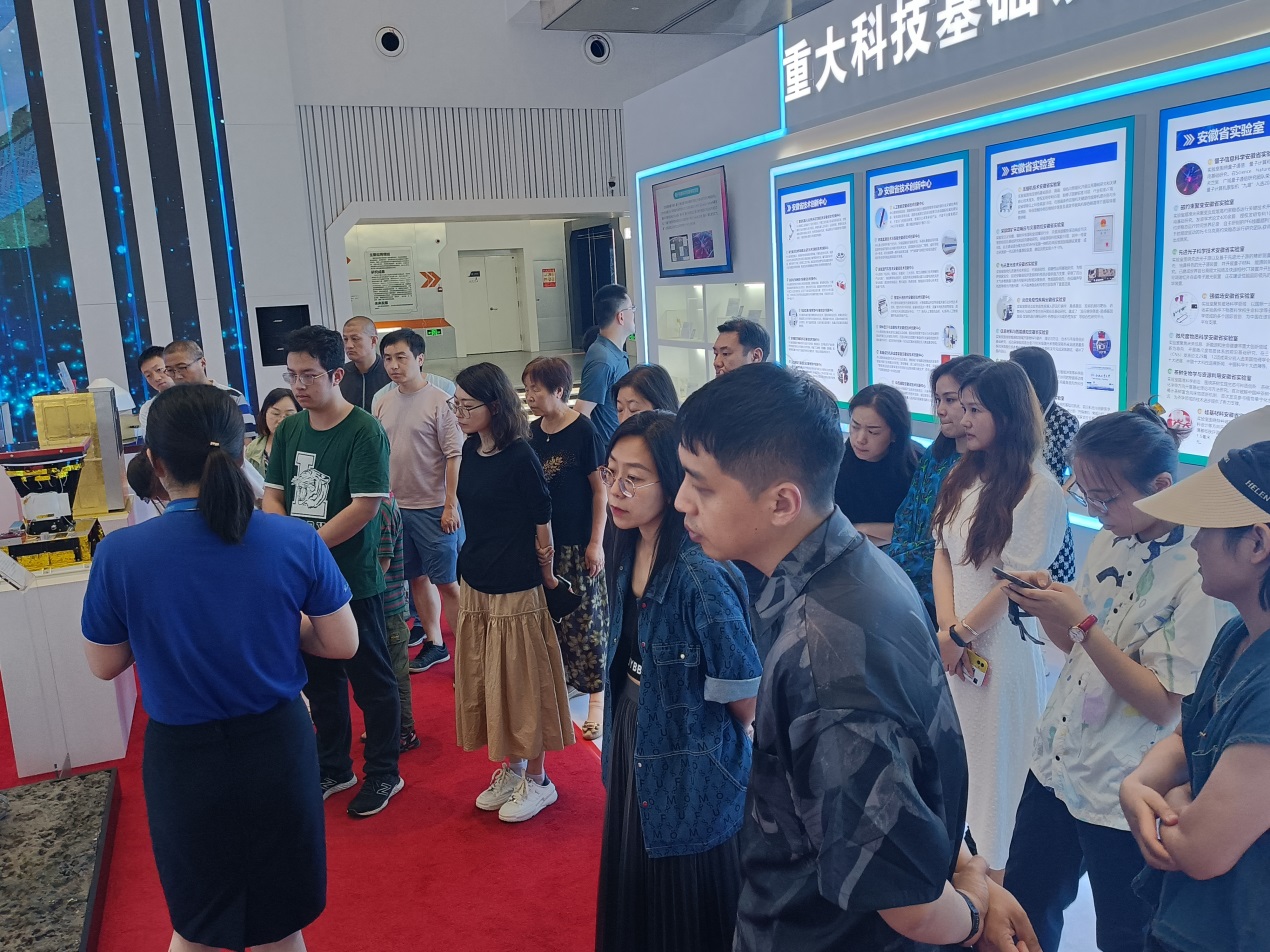 为推动学习贯彻习近平新时代中国特色社会主义思想主题教育走深走实,7月14下午,美术学院院长束新水、副院长李李带领全体绘画专业老师赴安徽省创新馆开展“科技兴皖”主题创作调研活动,场馆里精致的科技模型、神秘的量子通道、稳态的强磁场、托卡马克装置、墨子号卫星、人造小太阳等一件件重大前沿科技成果吸引了老师们驻足观看。琳琅满目的科技作品不仅彰显了科技自立自强,更是一批又一批科学家们自主创新、接续奋斗、勇于追求、敢于超越的生动实践。学习了科学家们潜心科研、呕心沥血的先进事迹后,大家也更加崇敬他们为攻克“卡脖子”关键核心技术而进行夜以继日的攻坚克难精神,从他们身上真正感受到科学家们勇担使命的家国情怀和矢志奋斗的强国精神。