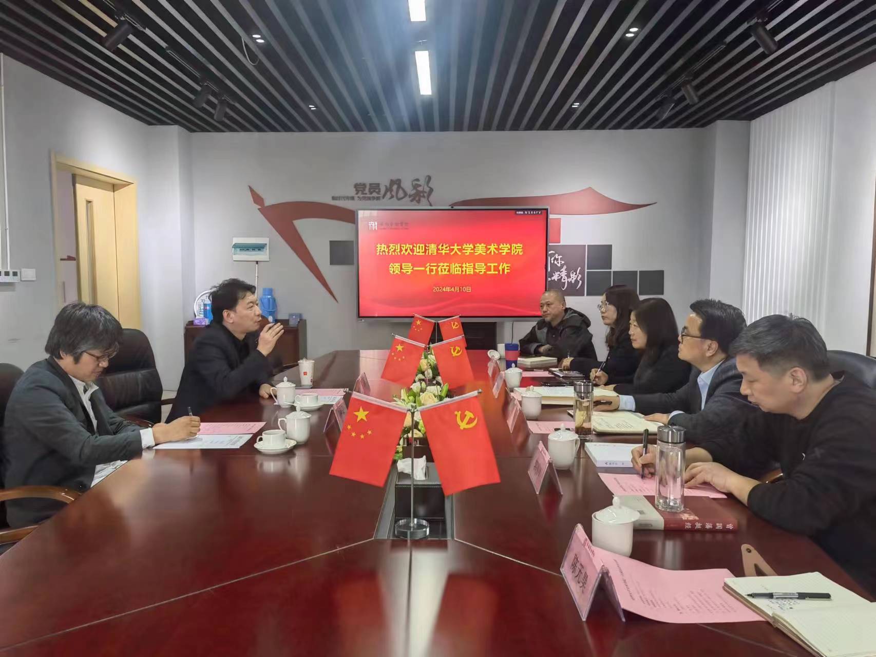 4 月 10 日下午,清华大学美术学院刘润福教授和岳嵩教授到访美术学院,就第七届“薪技艺”国际工艺美术作品展的合作事宜进行了深入的洽谈。美术学院党总支书记陈明海、院长束新水、副院长李李参加会议。