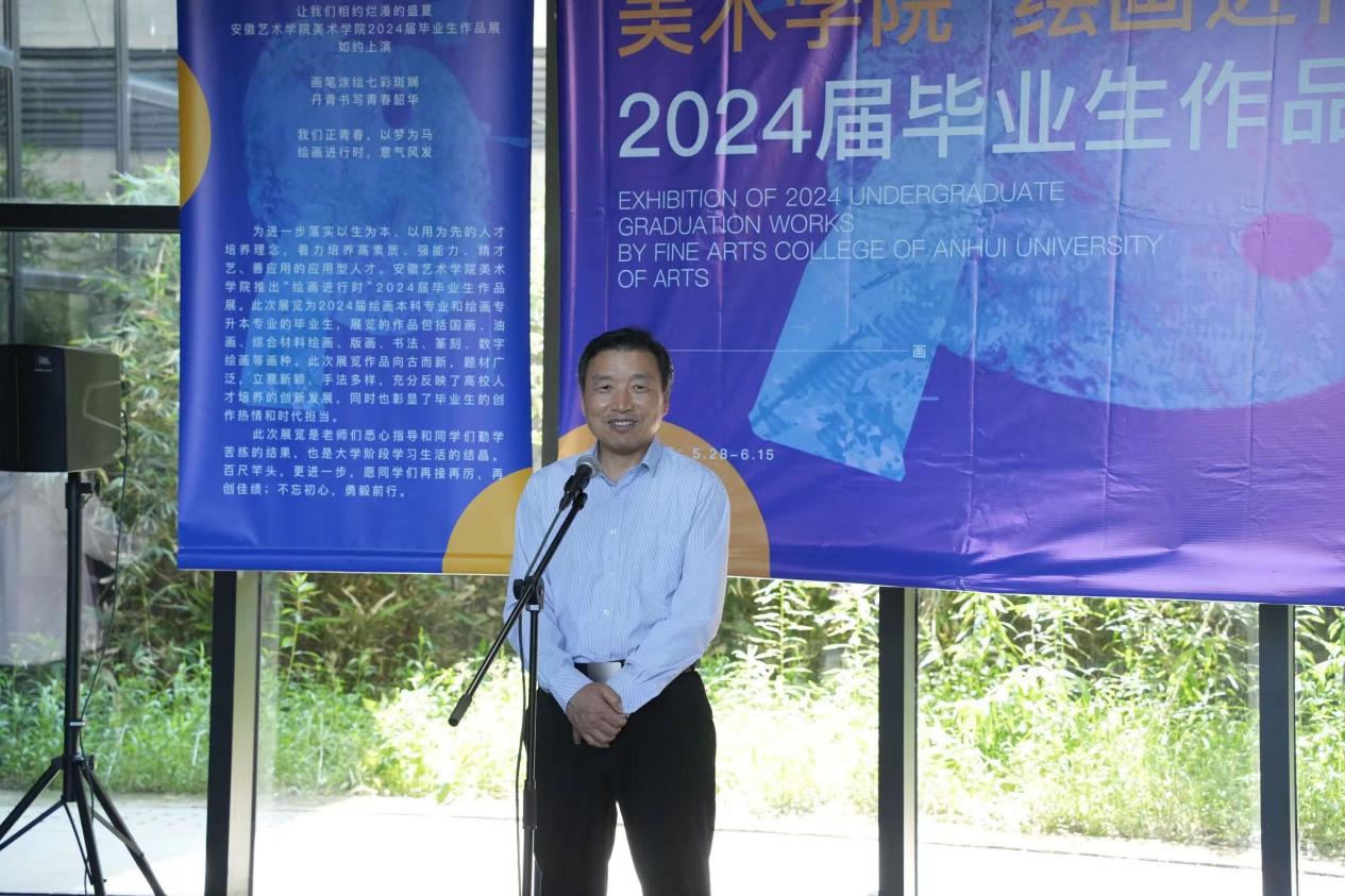 5月28日下午,乐动网官网美术学院“绘画进行时”2024届毕业生作品展在美术楼一楼展厅隆重开幕。副校长陈林出席并宣布作品展开幕。