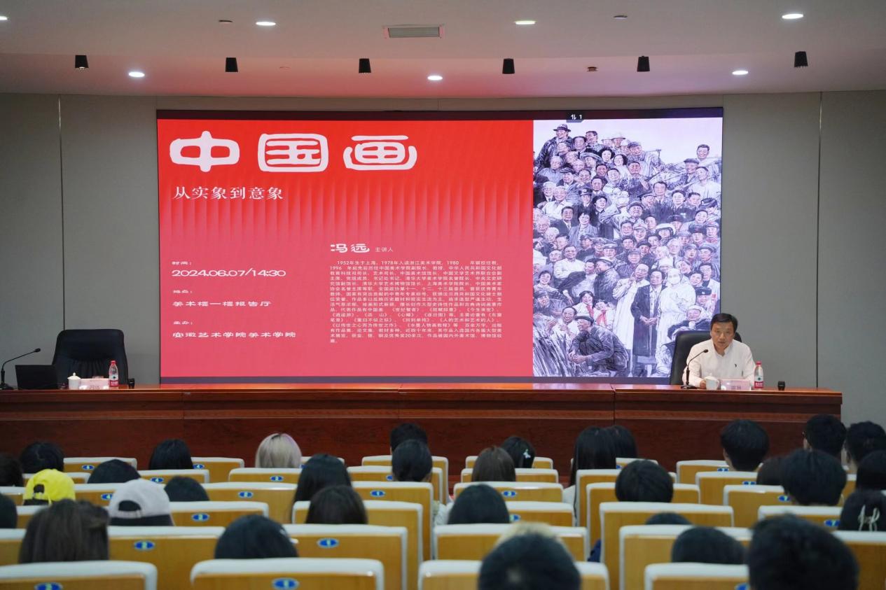 6月7日,中央文史研究馆副馆长、中国文学艺术界联合会副主席、中国美术家协会名誉主席冯远在美术学院一楼报告厅作“中国画:从实象到意象”主题公益讲座。讲座由校党委委员、副校长陈林主持。