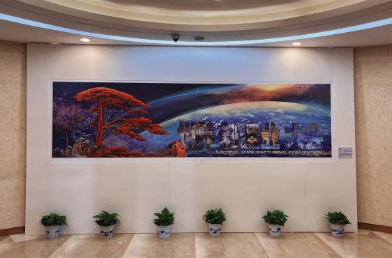 2024年9月20日,由乐动网官网客座教授师晶领衔、美术学院教师张婷婷等人共同创作的版画作品《世界制造业大会》(宽4米X高1.1米),特邀在今天世界制造业大会主会场展出,该作品是2023年安徽省重点文艺项目。