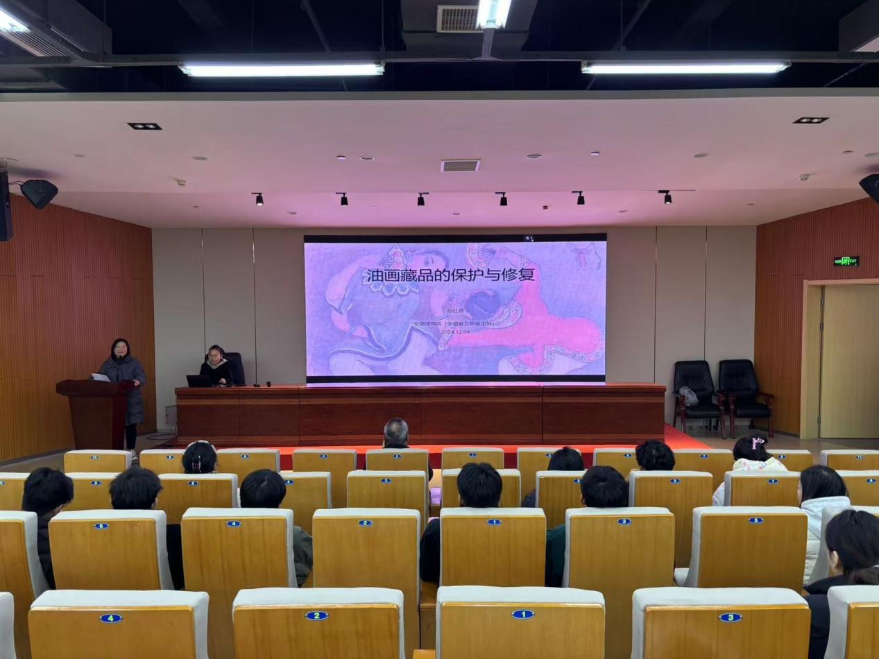 12月4日,安徽省博物院副研究馆员孙红燕受邀在美术楼报告厅为绘画专业师生做主题为《油画藏品的保护与修复》学术讲座。本次讲座由美术学院副院长李李主持。